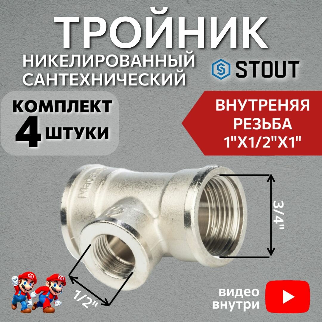 Тройник Stout ВВ переходной 3/4"х1/2х3/4" никелированный