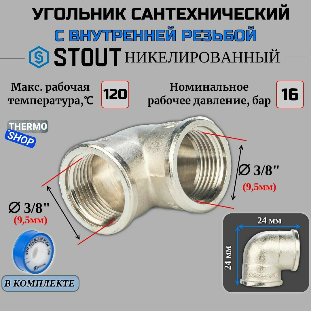 Угольник ВВ никелированный 3/8 STOUT SFT-0014-000038