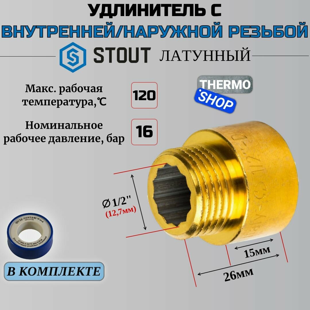 STOUT Удлинитель ВН 1/2"х15 мм латунь STOUT
