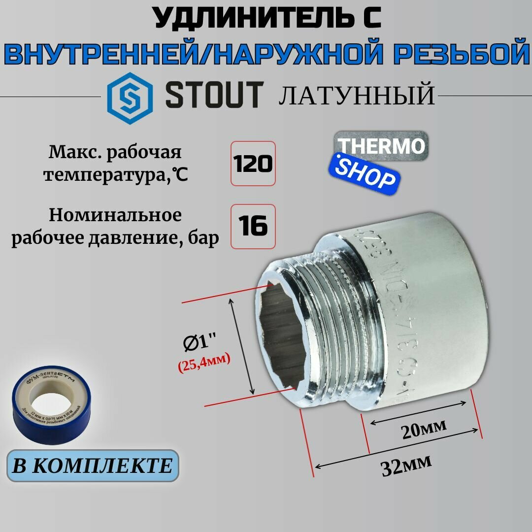 Удлинитель Stout (SFT-0002-003420) 20 мм х 3/4 ВР(г) х 3/4 НР(ш) латунный