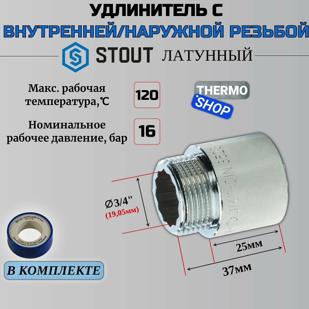 Удлинитель Stout (SFT-0002-003420) 20 мм х 3/4 ВР(г) х 3/4 НР(ш) латунный