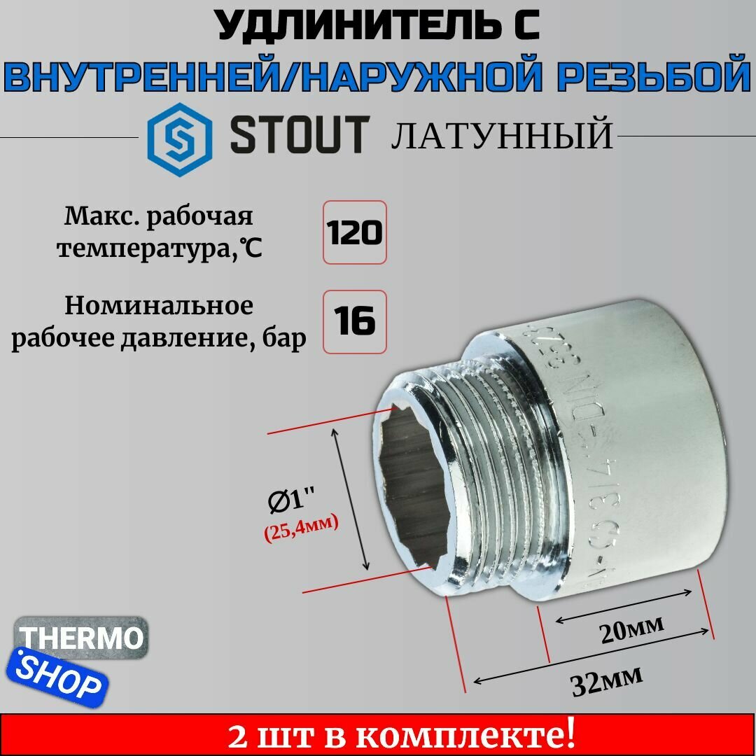 Удлинитель Stout (SFT-0002-003420) 20 мм х 3/4 ВР(г) х 3/4 НР(ш) латунный
