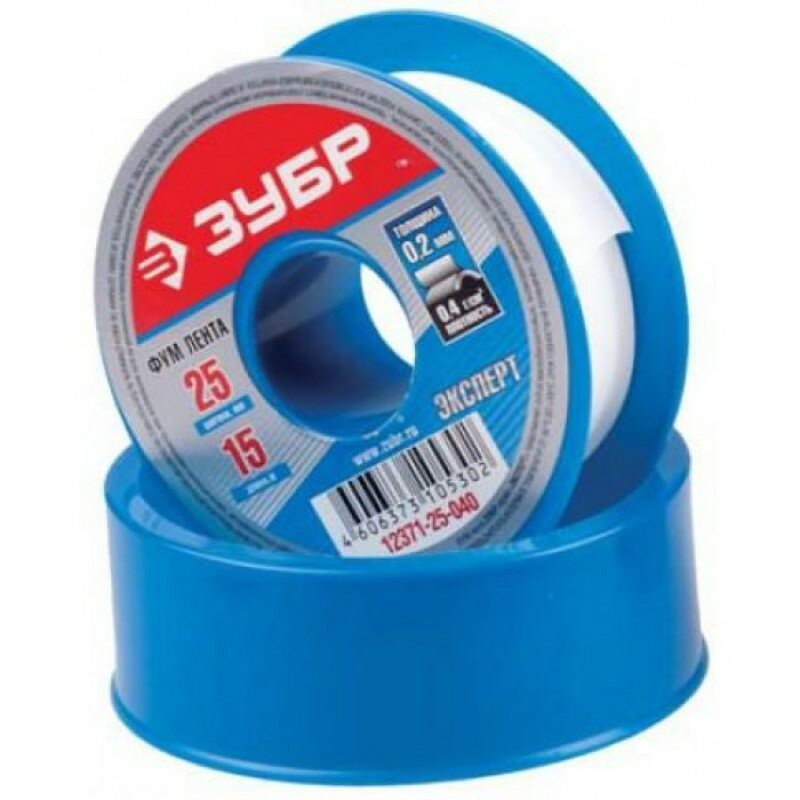 Купить ЗУБР 0,1 мм х 25 мм х15 м, 0,40 г/см3, Фум лента (12373-25-040)