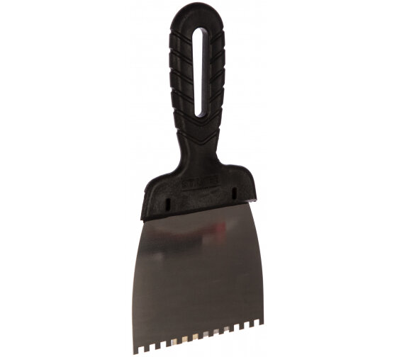 Купить STAYER Шпатель нержавеющий зубчатый с пластмассовой ручкой, 100мм, зуб 4x4мм 1009-10-04