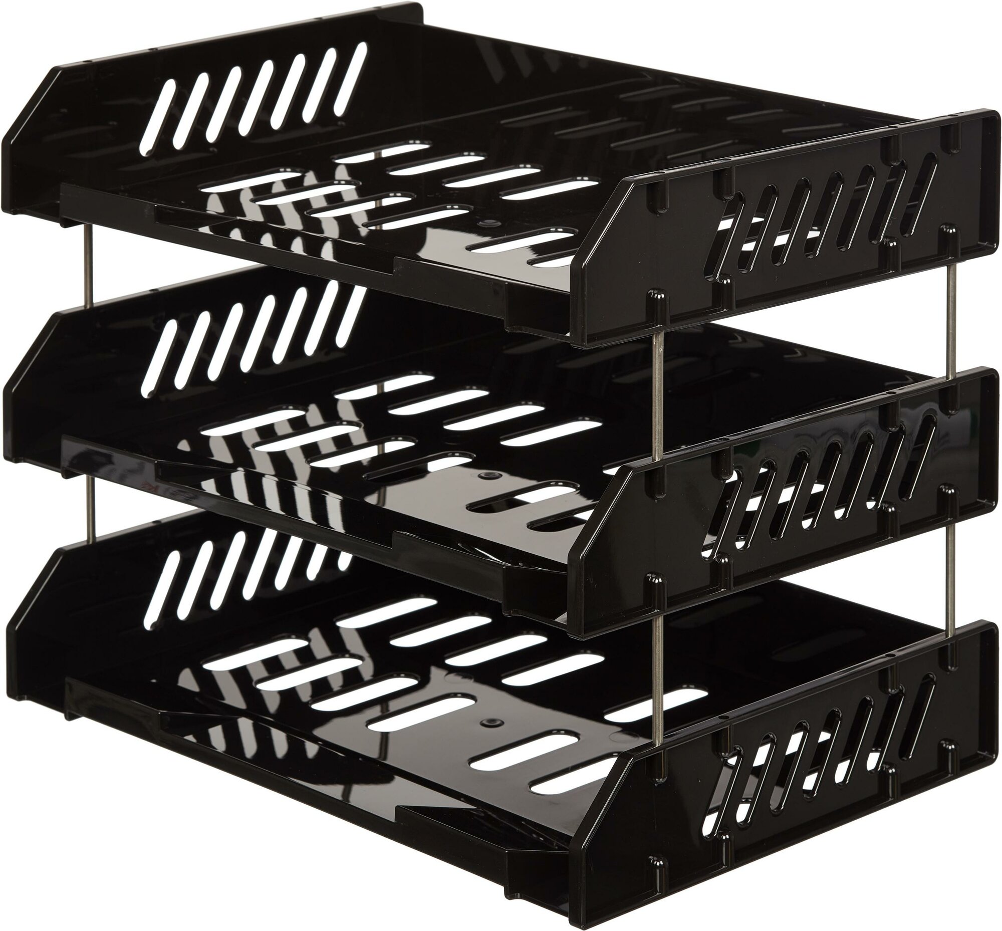Лотки для бумаг горизонтальные Стамм Сити 3 штуки на металлических стержнях черные, 913412
