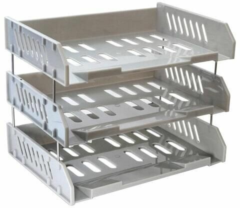 Лотки для бумаг СТАММ горизонтальные, 3 шт, "Сити", поперечные, на металлических стержнях 6 см, серые (ЛТ561)