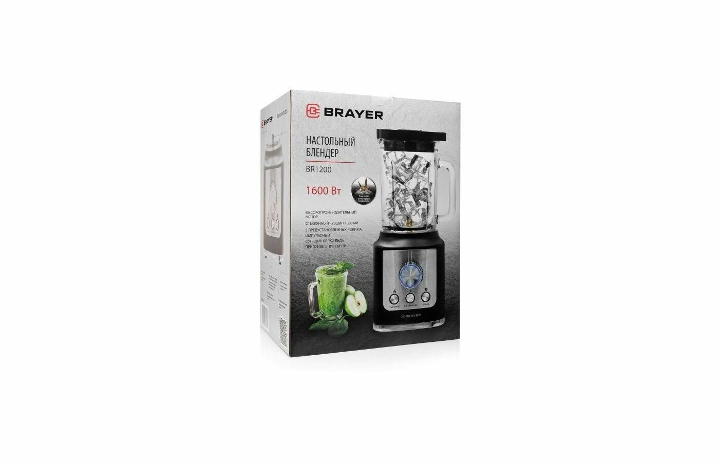 Купить Блендер стац. BRAYER 1200BR-BK /1600 Вт, стекл., 1,8 л, 6 титан. ножей, импульс, колка льда/