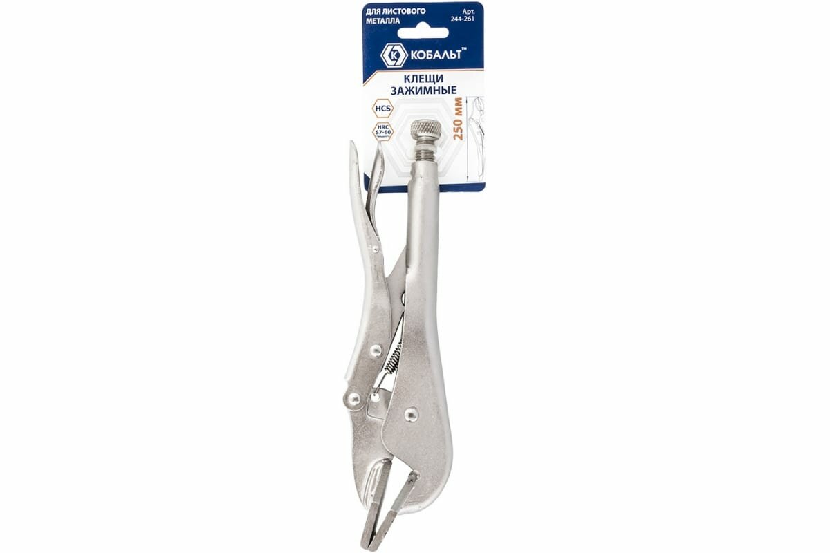 Кобальт Клещи зажимные для листового металла, 250 мм, 1 шт подвес 244-261