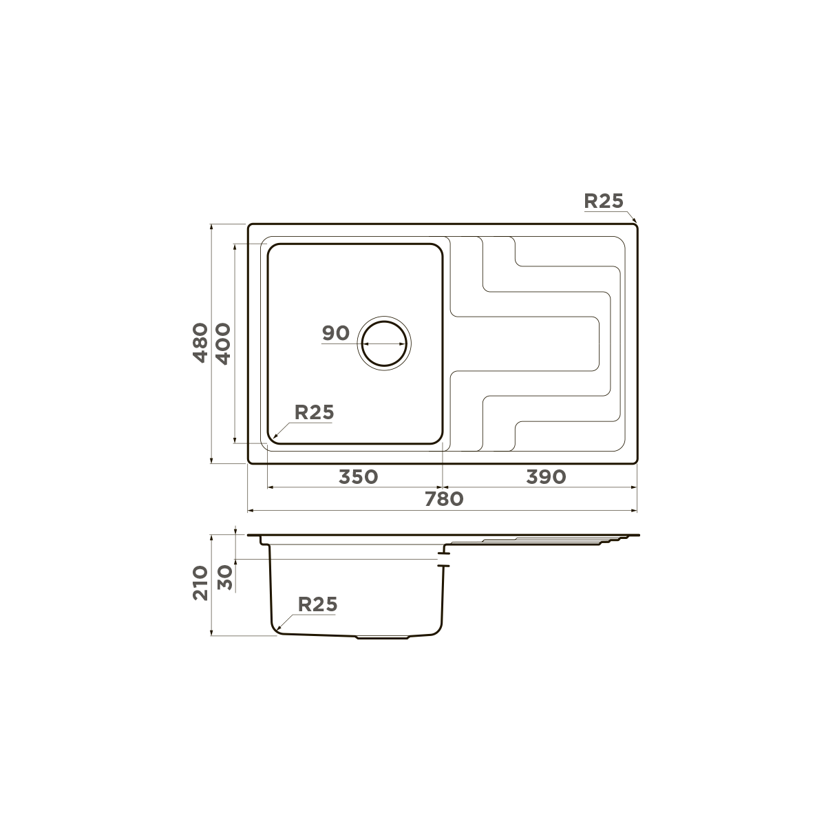 Мойка, OMOIKIRI, Nobrand Mizu, шгв 780*480*210, отверстия для смесителя-отсутствуют, цвет-нержавеющая сталь