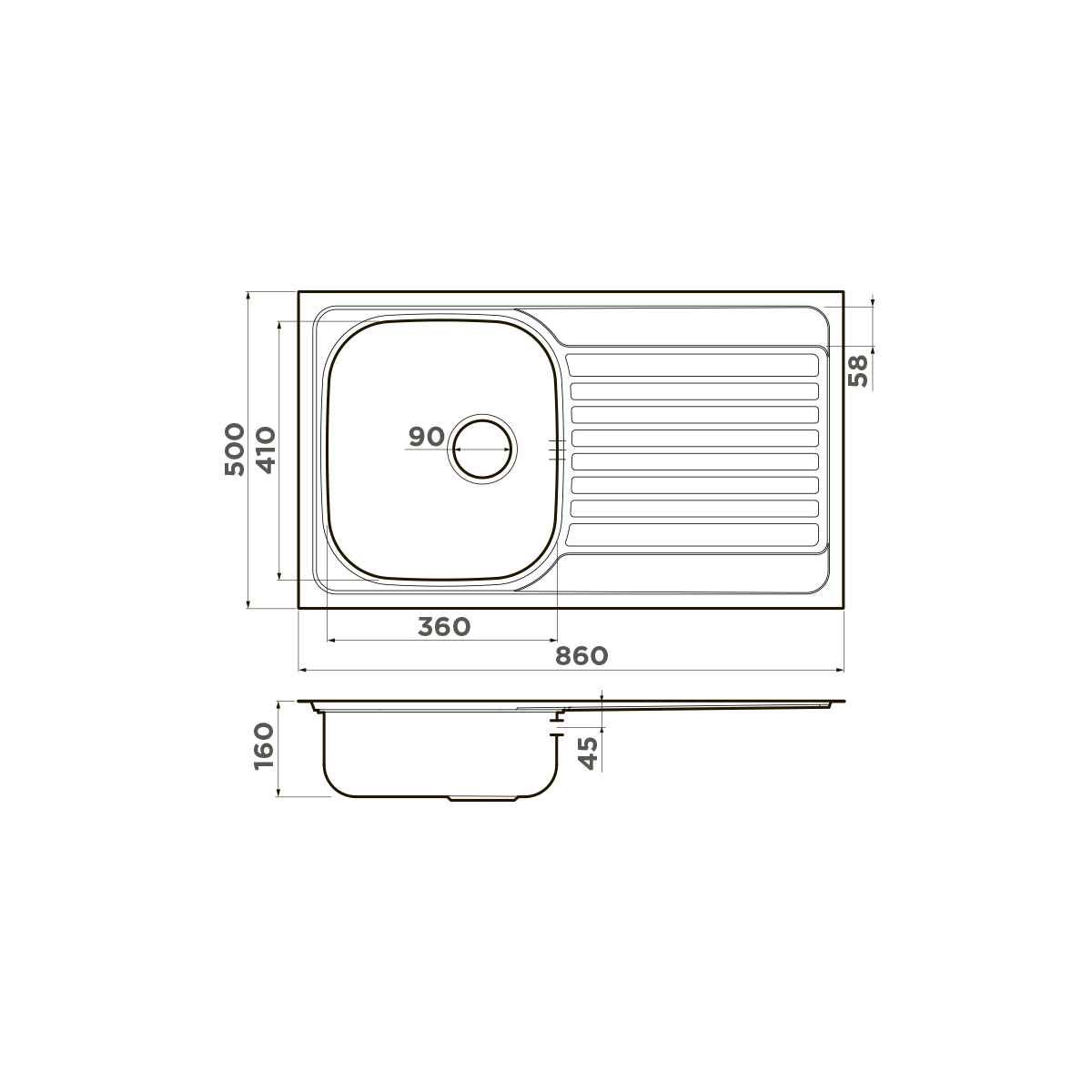 | Минусы: | Небольшая глубина, нет отверстия под смеситель. |
