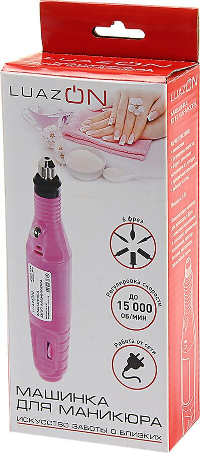 Luazon Home Аппарат для маникюра LuazON LMH-01, 6 насадок, 3000-15000 об/мин, 5 Вт, розовый