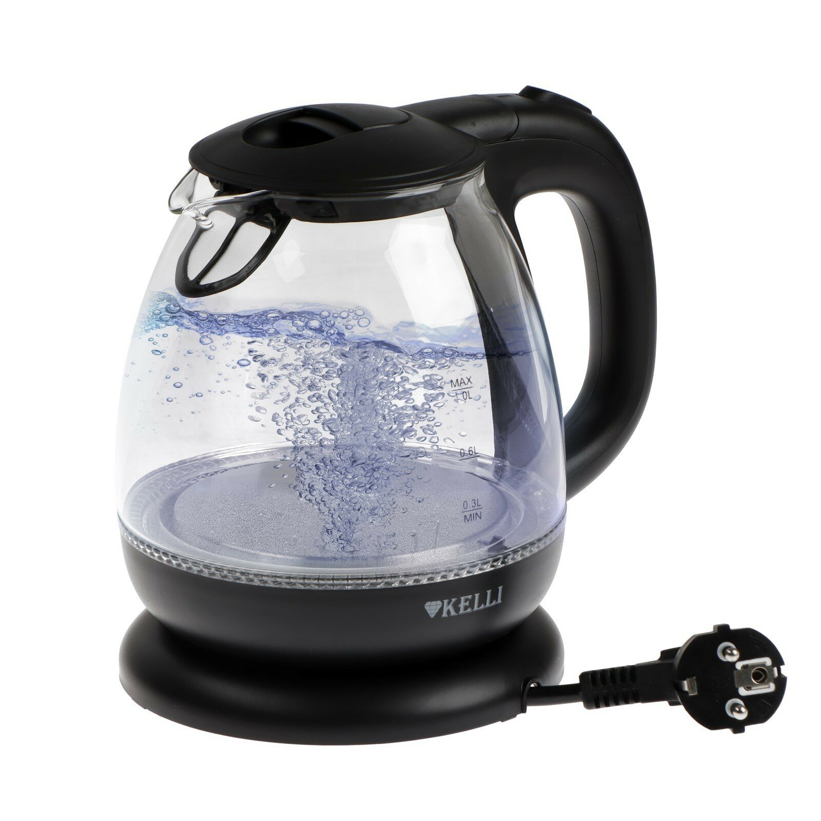 Купить Kelli Чайник электрический KELLI KL-1370, стекло, 1 л, 1100 Вт, чёрный