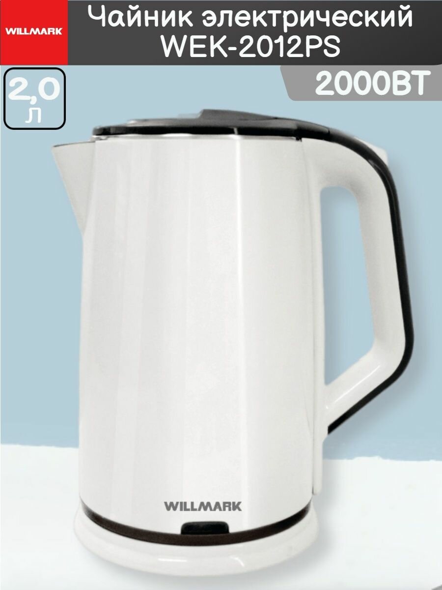 Чайник электрический WILLMARK WEK-2012PS, 2000 Вт, 2 л, двустенная конструкция с технологией термоса, белый