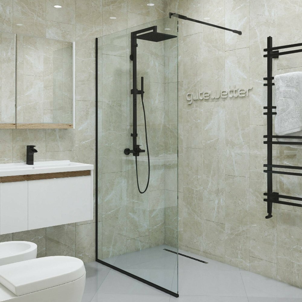Душевая перегородка GWMPGL010 80x220 см, профиль черный матовый, цвет стекла бесцветный, 10 мм стекло закаленное