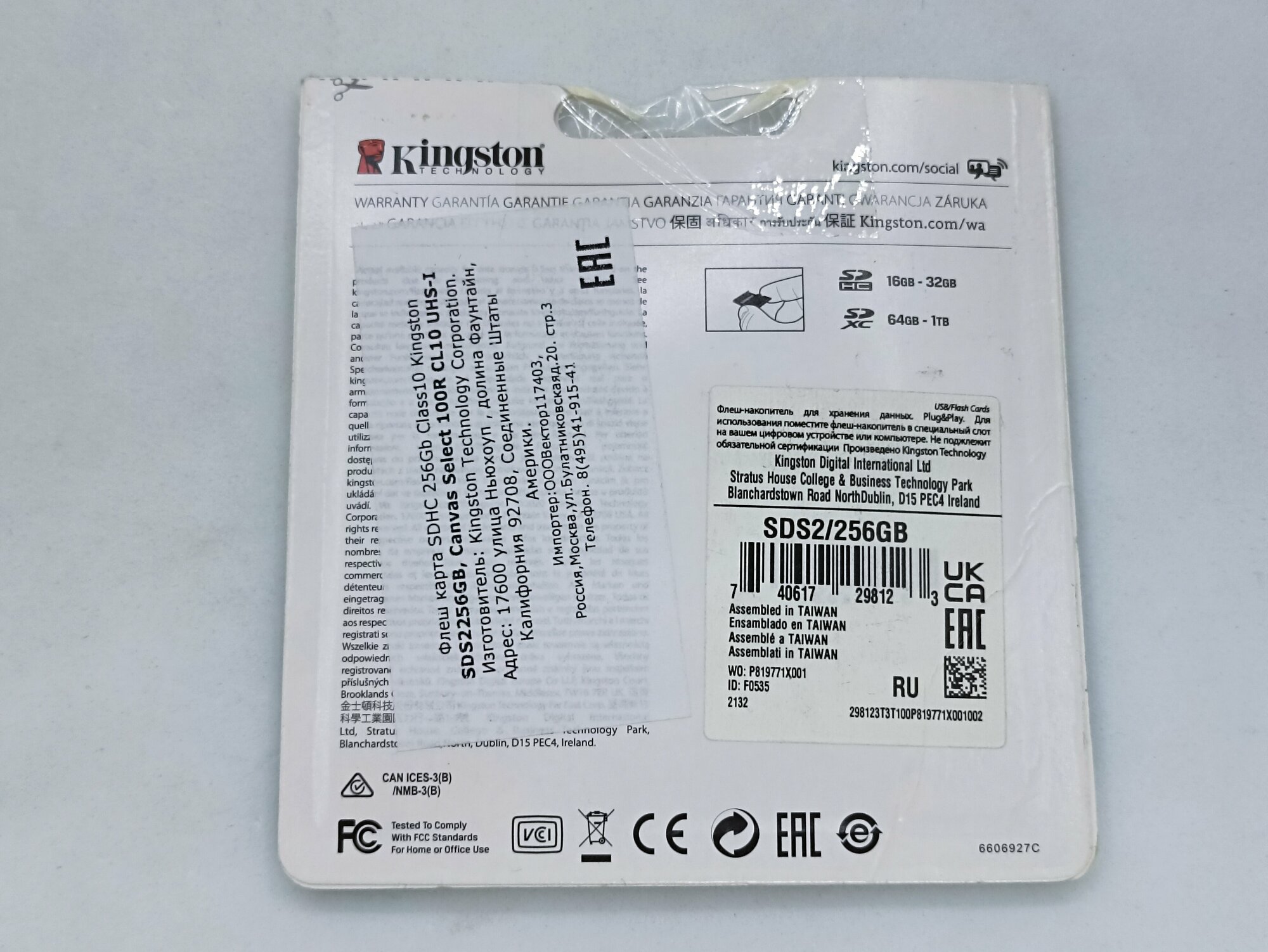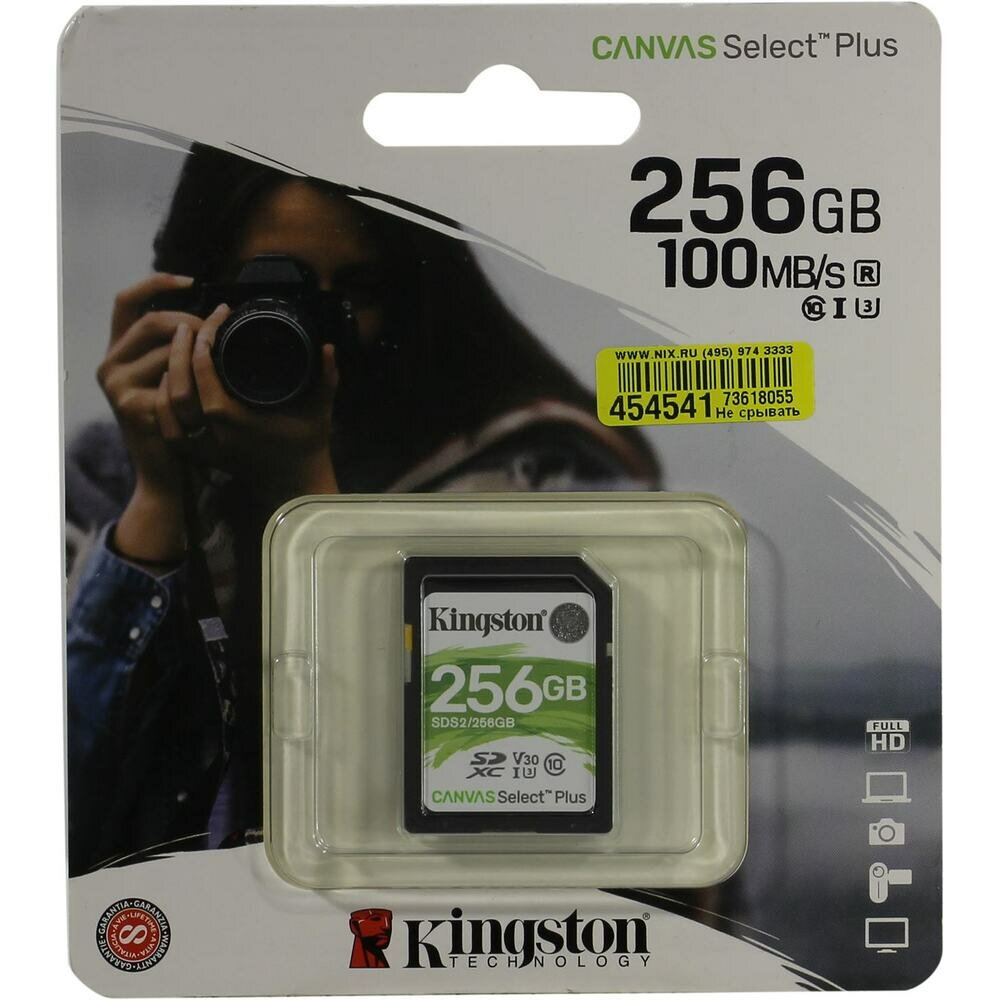 Карта памяти Kingston Canvas Select Plus SDXC 256 ГБ Class 10, V30, UHS-I U3, R/W 100/85 МБ/с (SDS2/256GB)