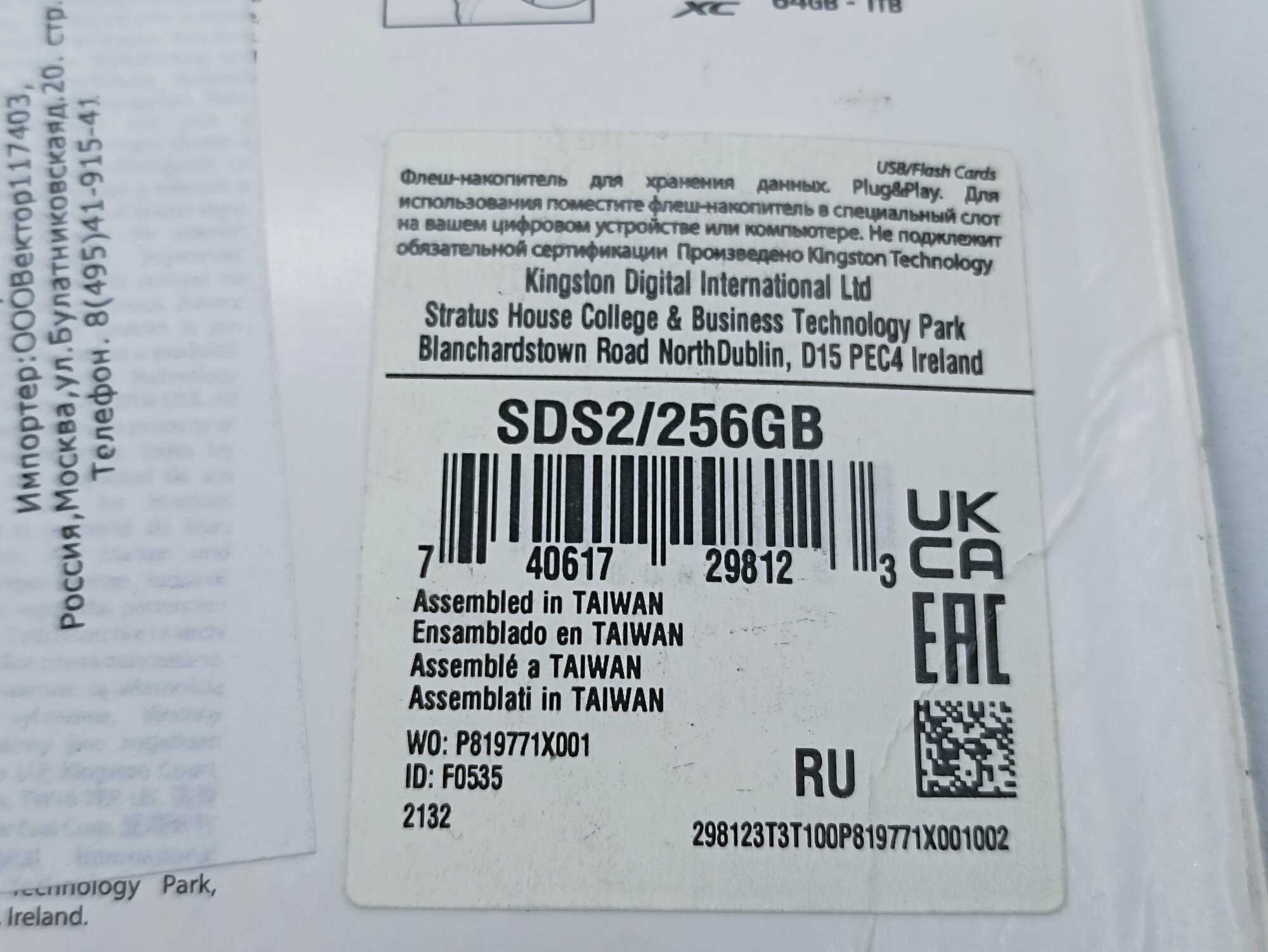 Карта памяти 256Gb - Kingston SDXC C10 SDS2/256GB
