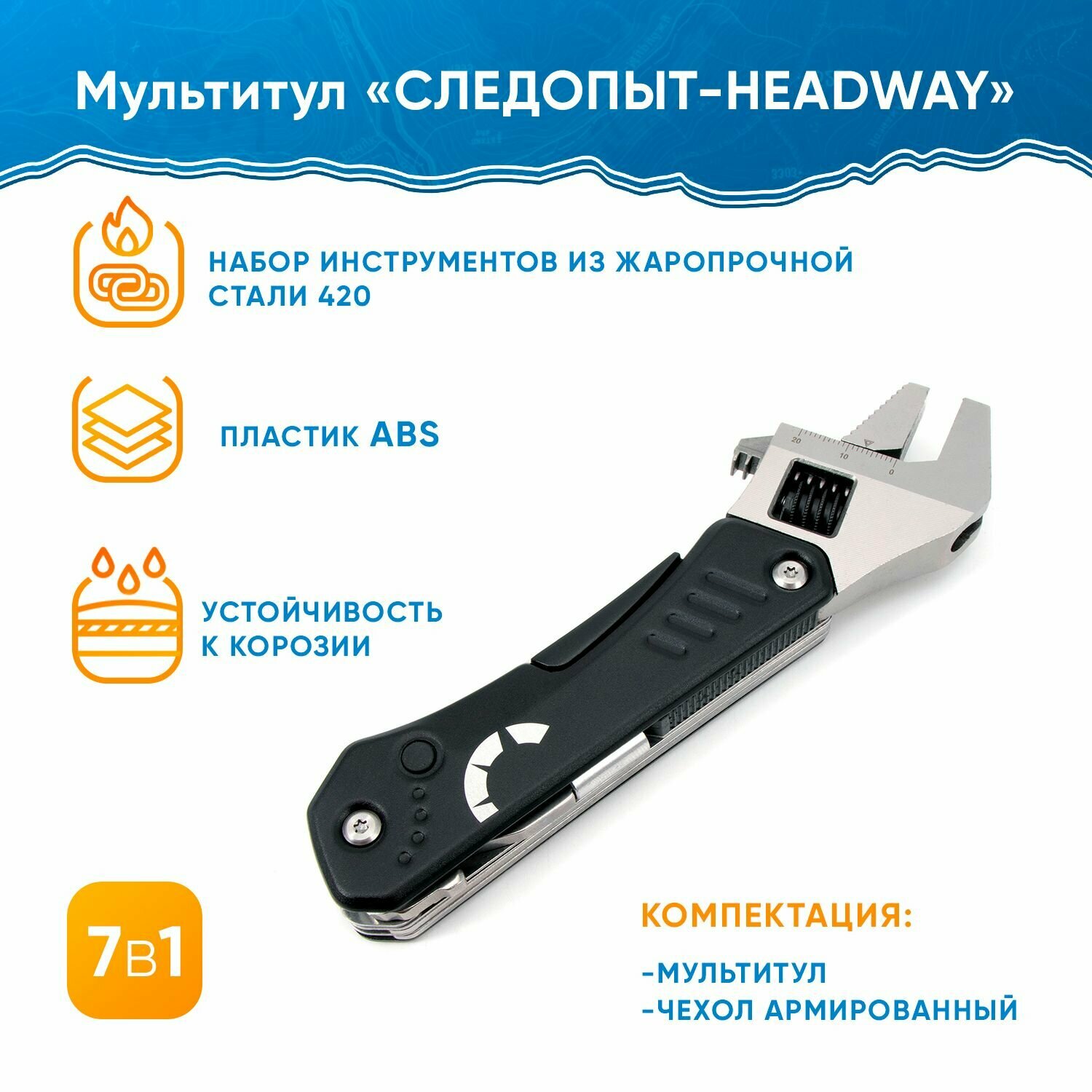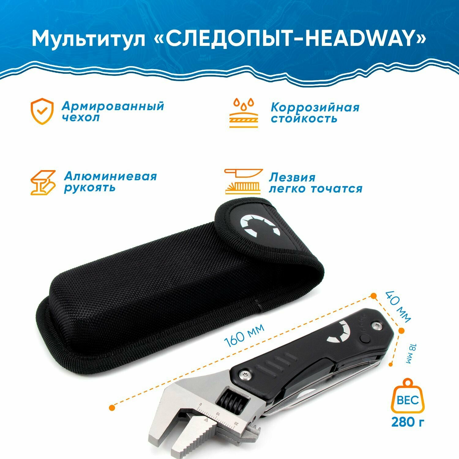 Мультитул (плоскогубцы) Следопыт -HEADWAY, 105х45х16 мм, 11 предметов, в чехле, на блистере