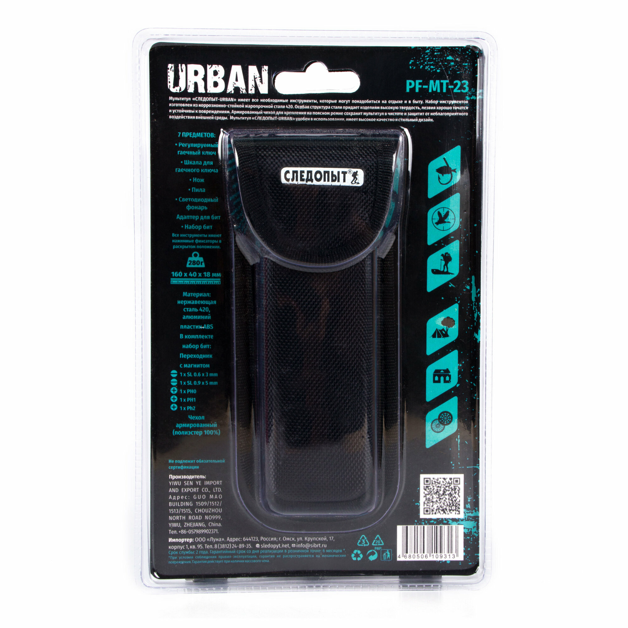 Мультитул (гаечный ключ) "следопыт-urban", 160х40х18 мм, 7 предметов, с набором бит, в чехле, в коро