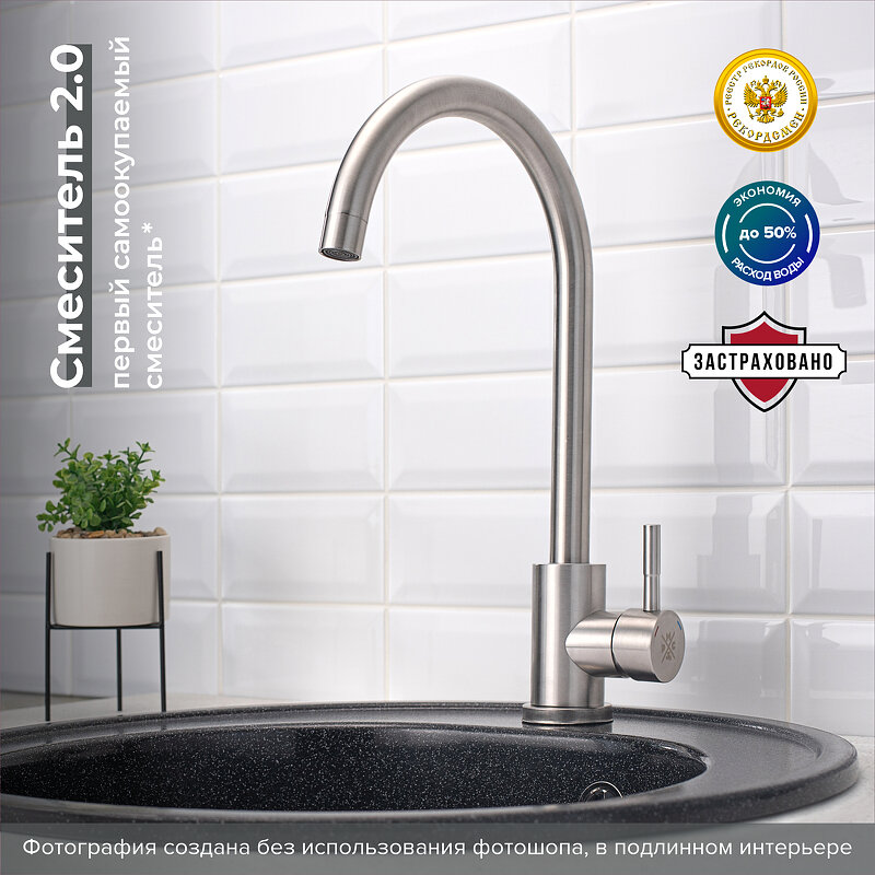 Смеситель для кухни Ростовская Мануфактура SUS124-017F нержавеющая сталь