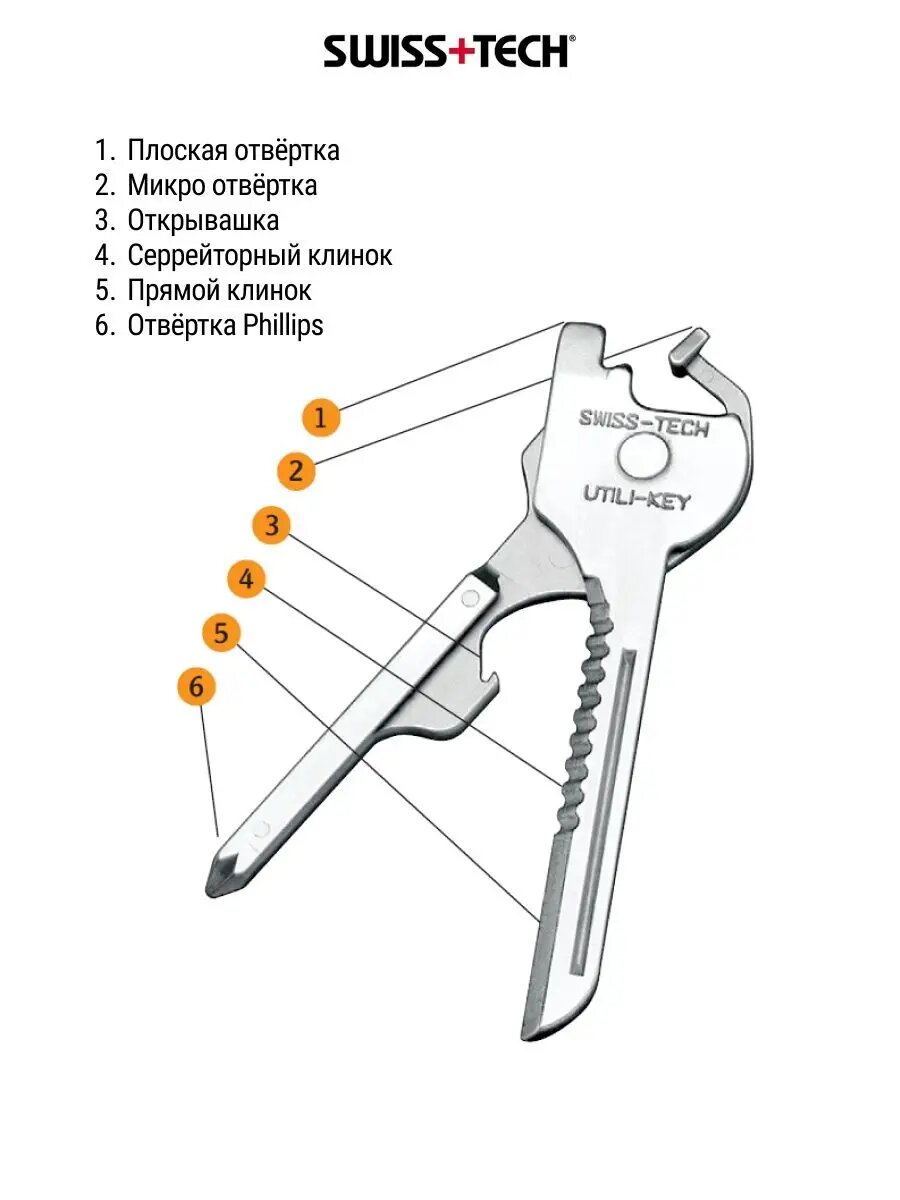 SWISS TECH ST66676 карманный мультиинструмент utili-key 6-in-1 swiss tech st66676карманный мультиинструмент utili-key 6-in-1 swiss tech st66676