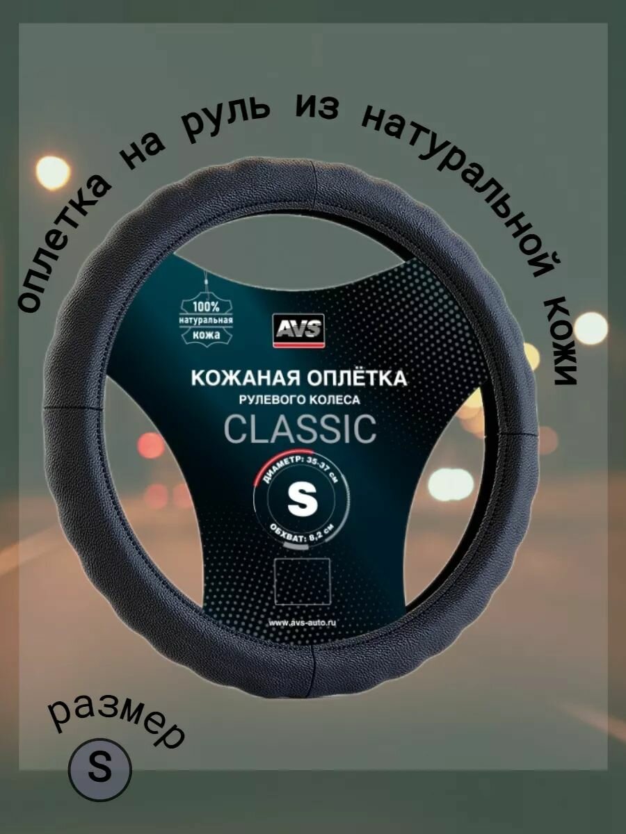 AVS A78653S A78653S_оплетка на руль! нат. кожа, GL-165S-B, размер S, черный\