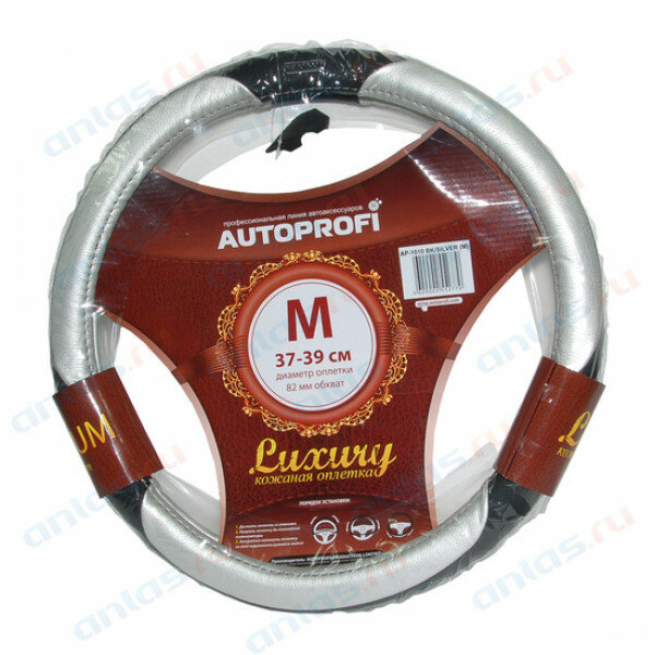 AUTOPROFI AP1010BKSILVERM Оплётка руля Luxury кожа, 3 рельефные вставки (черныйсеребро) (М)