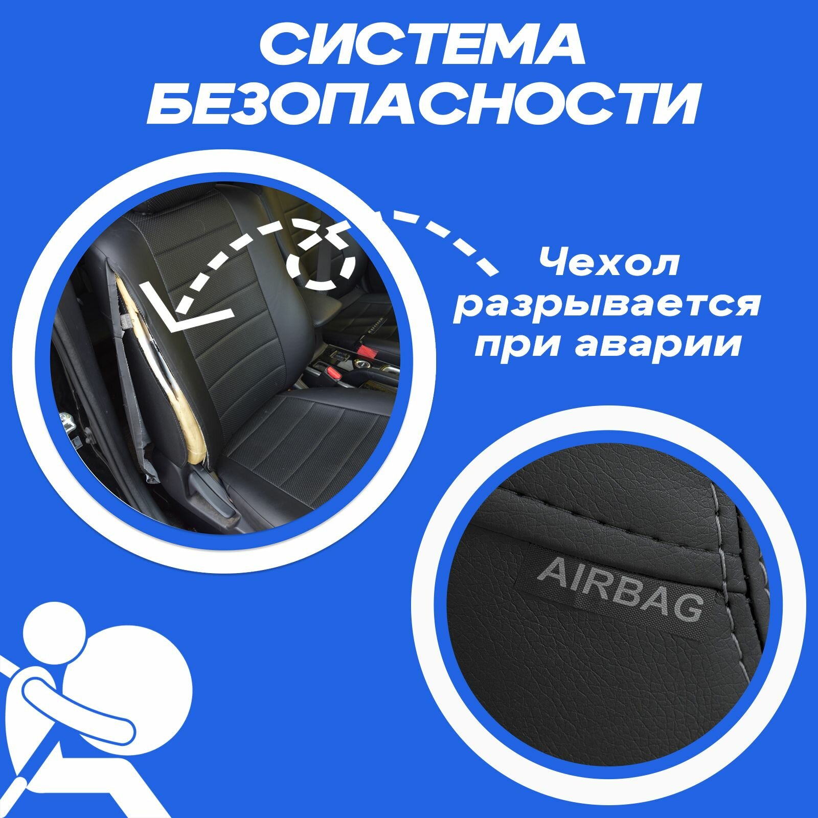 Комплект чехлов Автопилот Экокожа Chevrolet Cobalt с 11г. / Ravon R4 с 16г. Черный + Синий