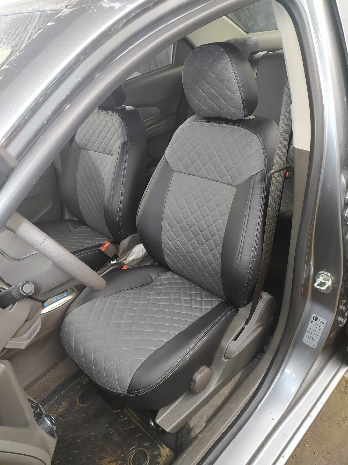 Комплект чехлов на сиденья Chevrolet Cobalt с 11г. / Ravon R4 с 16г. (Экокожа ромб, Серый + Черный)