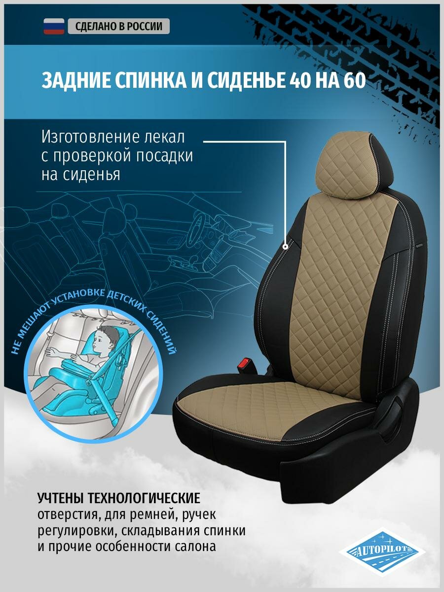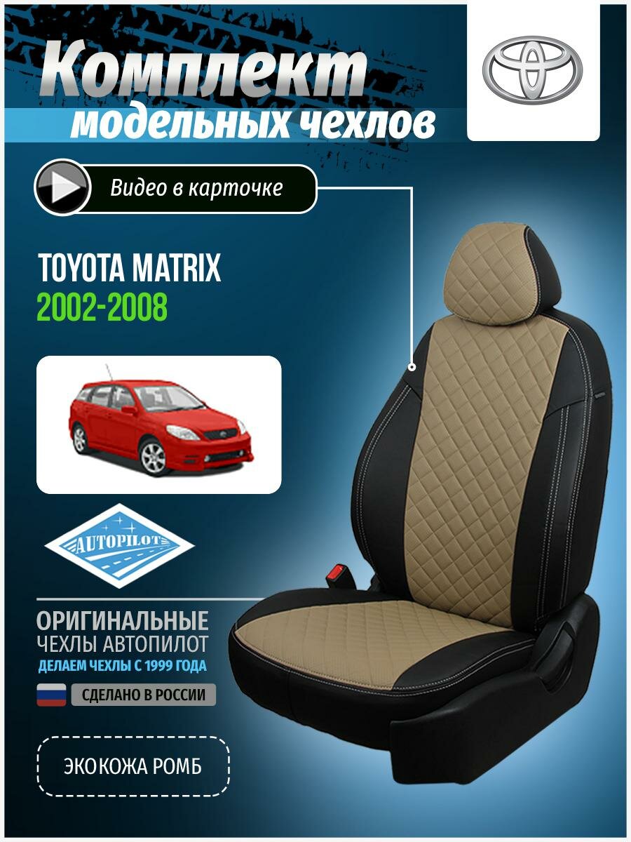 Комплект чехлов АВТОПИЛОТ из экокожи для Toyota Matrix, ромб, черный/темно-бежевый