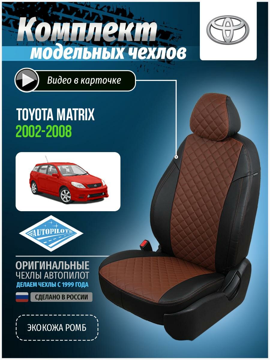 Комплект чехлов АВТОПИЛОТ из экокожи для Toyota Matrix, ромб, черный/темно-бежевый