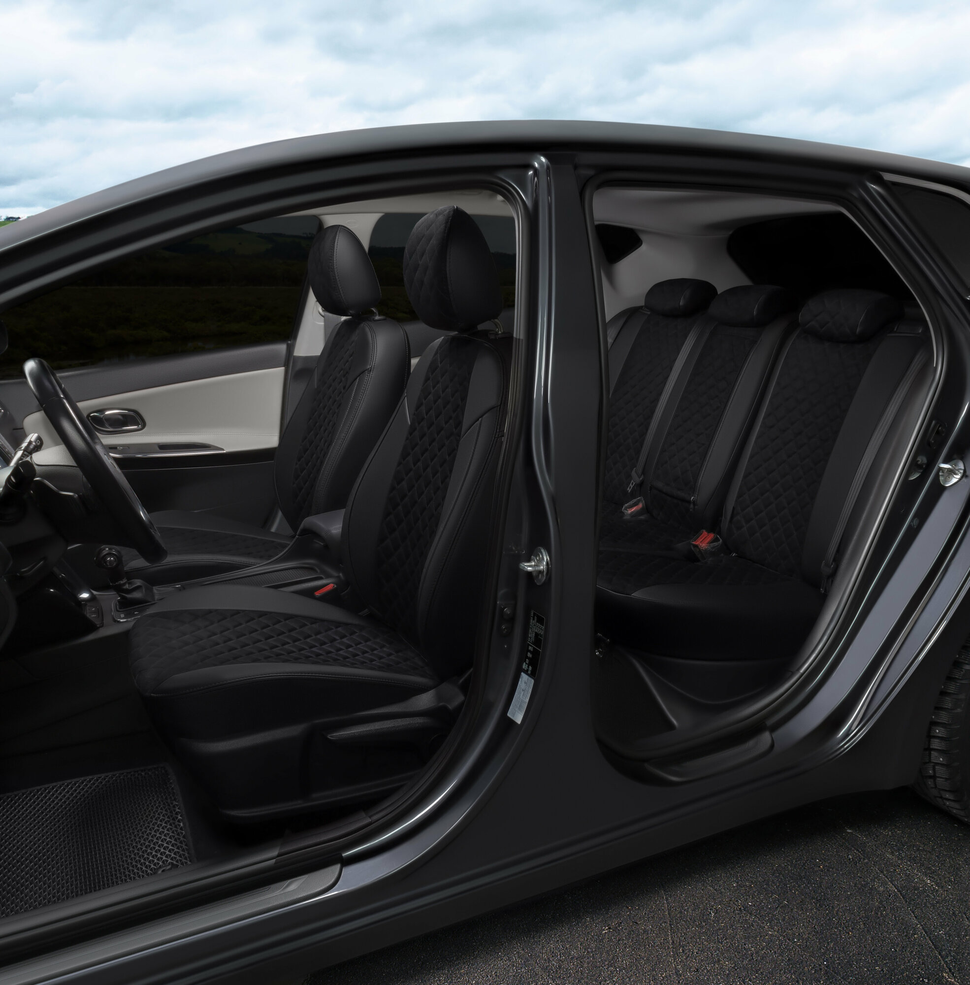 Комплект чехлов Автопилот Алькантара ромб Hyundai Solaris I Sd / KIA Rio III (40/60) с 10-17г. Черный + Серый