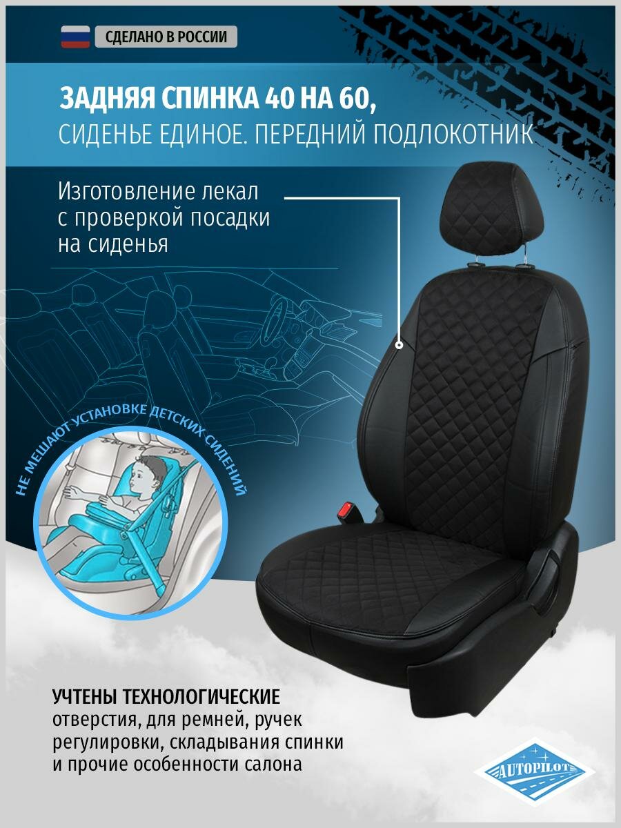 Купить Комплект чехлов Автопилот Алькантара ромб Hyundai Solaris I Sd / KIA Rio III Sd (40/60) с 10-17г. Черный + Черный