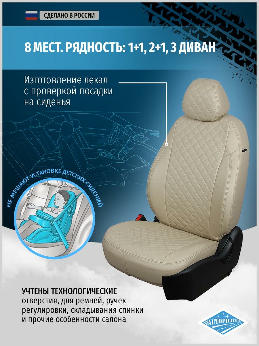 Комплект чехлов АВТОПИЛОТ из экокожи для Hyundai Starex (H-1), ромб, темно-бежевый