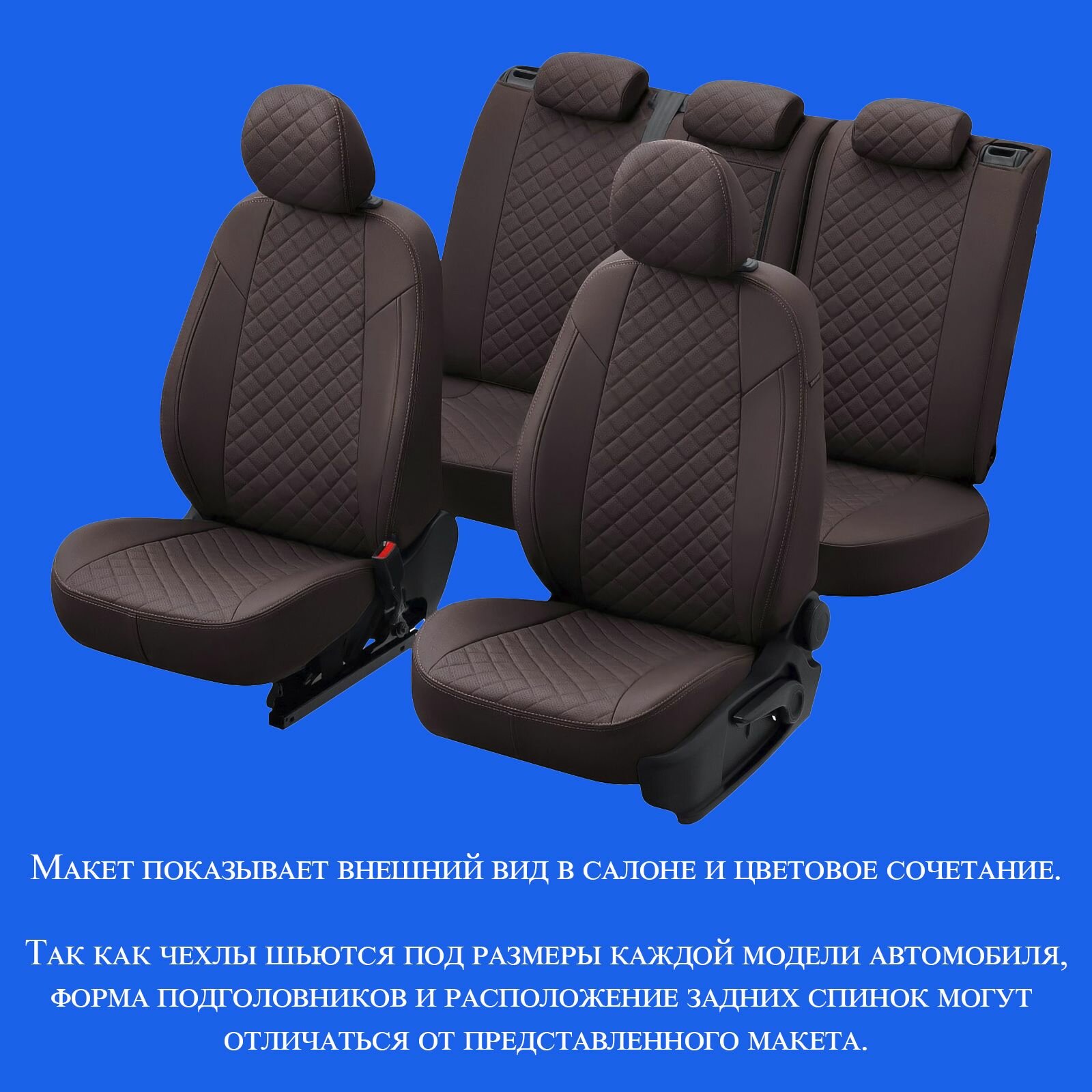 Комплект чехлов на сиденья Toyota Land Cruiser Prado 150 (5 мест) с 09-17г. (Экокожа ромб, Шоколад + Шоколад)