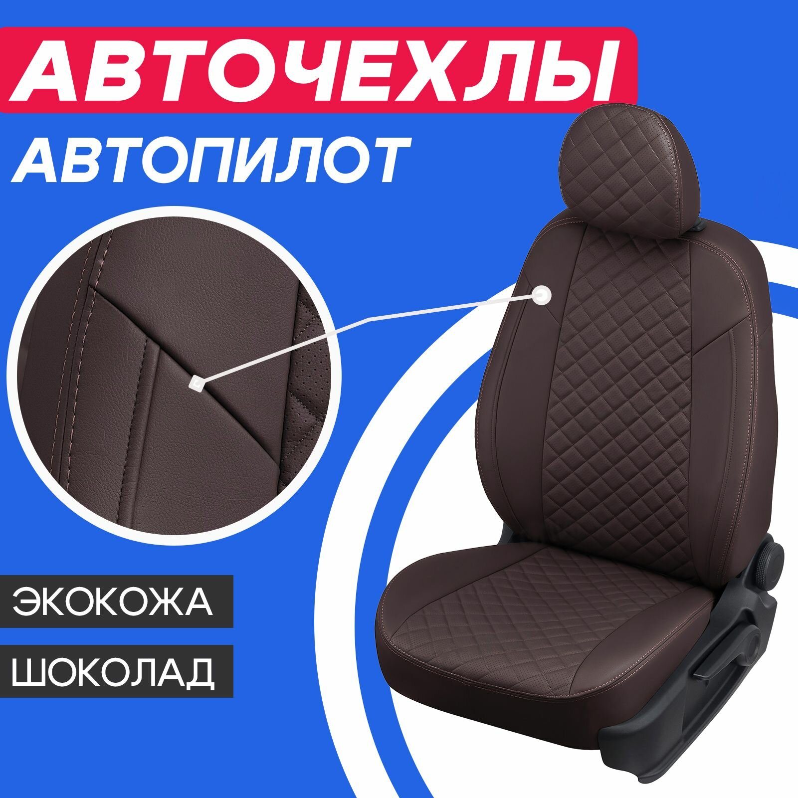 Модельные авточехлы АВТОПИЛОТ для Toyota Land Cruiser Prado 150 (5 мест, 2009-2017гг) экокожа ромб, шоколадные