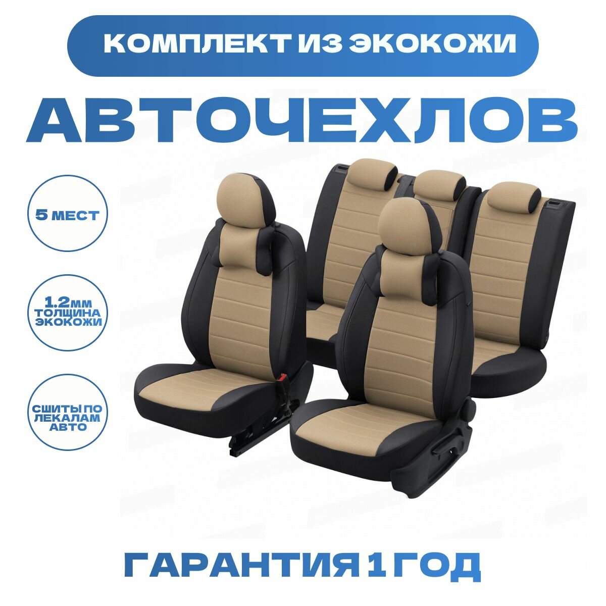 Комплект чехлов Автопилот Экокожа Toyota Camry XV70 Sd с 17г. Черный + Темно-бежевый