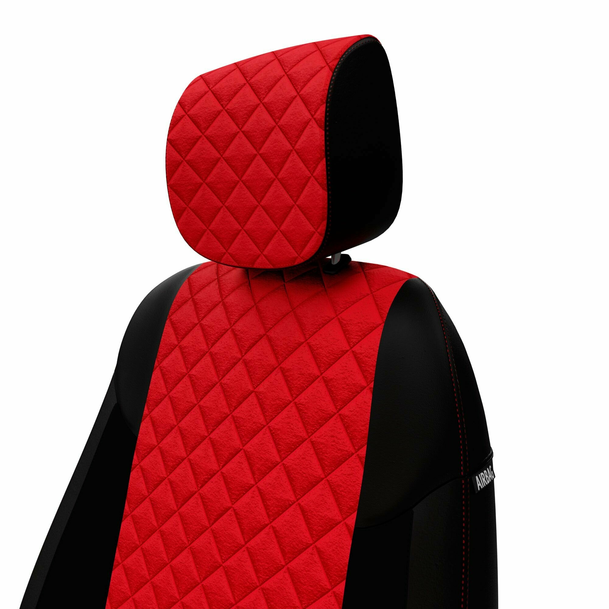 Чехлы на Volkswagen Polo 5 седан (2010-2020) сплошной, Алькантара Ромб, Черный + Красный, Автопилот, vo-po-phs-chekr-ar