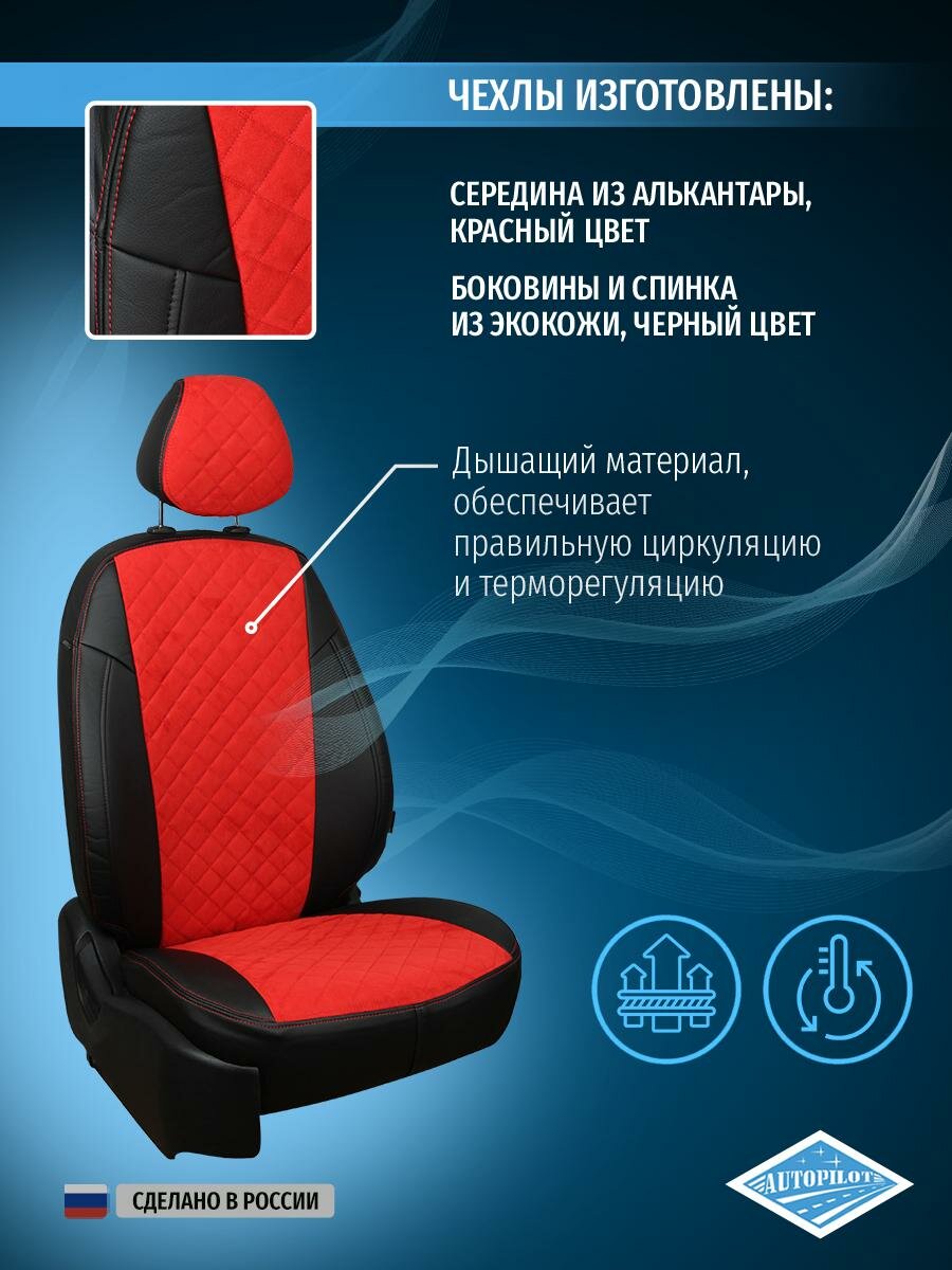 Купить Модельные авточехлы АВТОПИЛОТ для Volkswagen Polo (седан, задний диван раздельный, 2009-2020гг) алькантара ромб, черно-красные