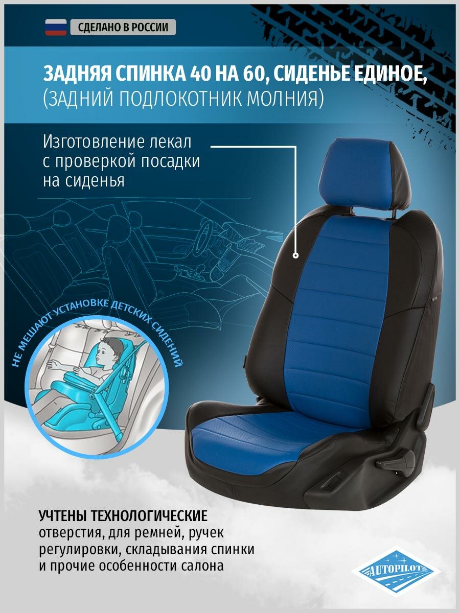 Комплект чехлов АВТОПИЛОТ из экокожи для Opel Astra H седан, хэтчбек, черный/синий