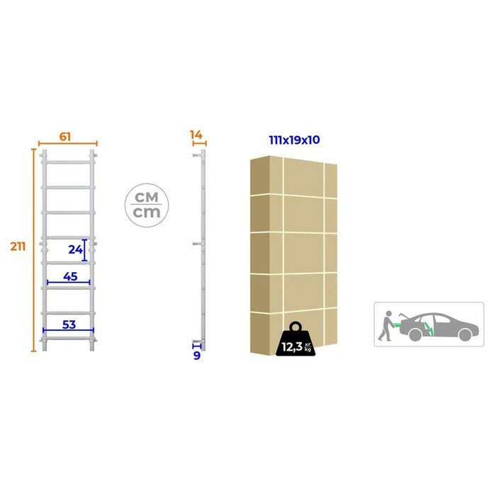 | Ширина шведской стенки | 49 см |
