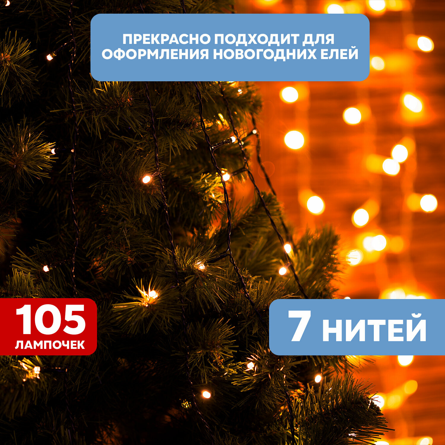 Гирлянда елочная с кольцом 7 нитей по 1.5м LED тепл. бел. не соединяется | код 235-076 | Neon-Night ( 1шт. )