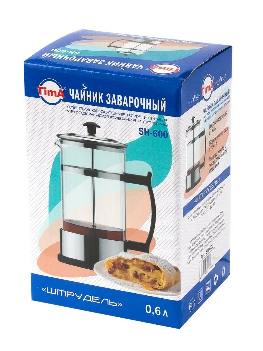 Френч-пресс TimA SH-600 "Штрудель" 600 мл нержавеющая сталь, боросиликатное стекло интересное: