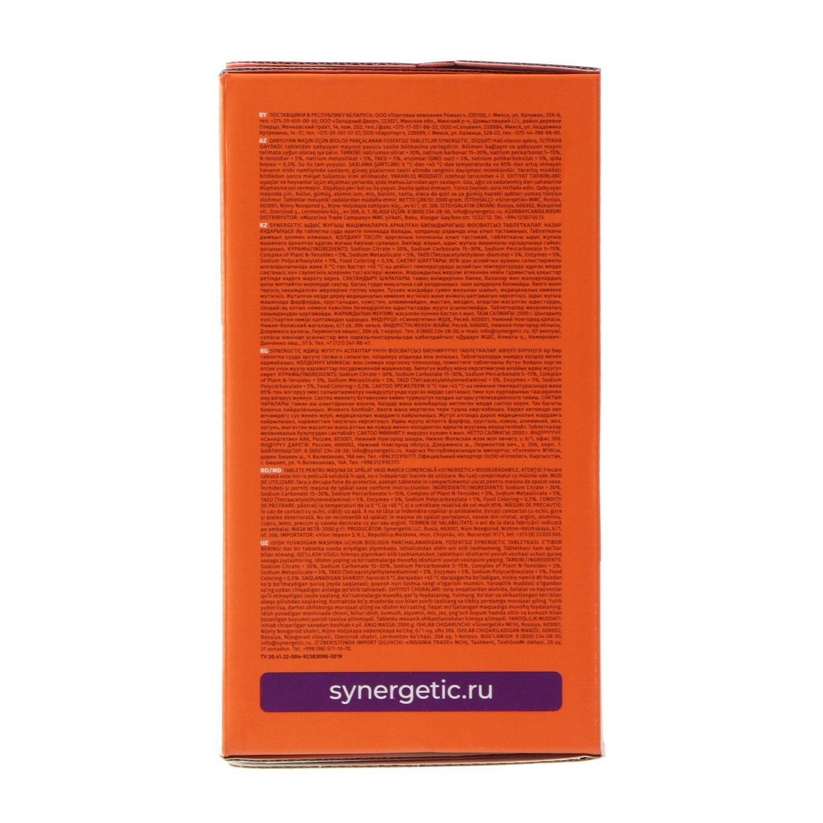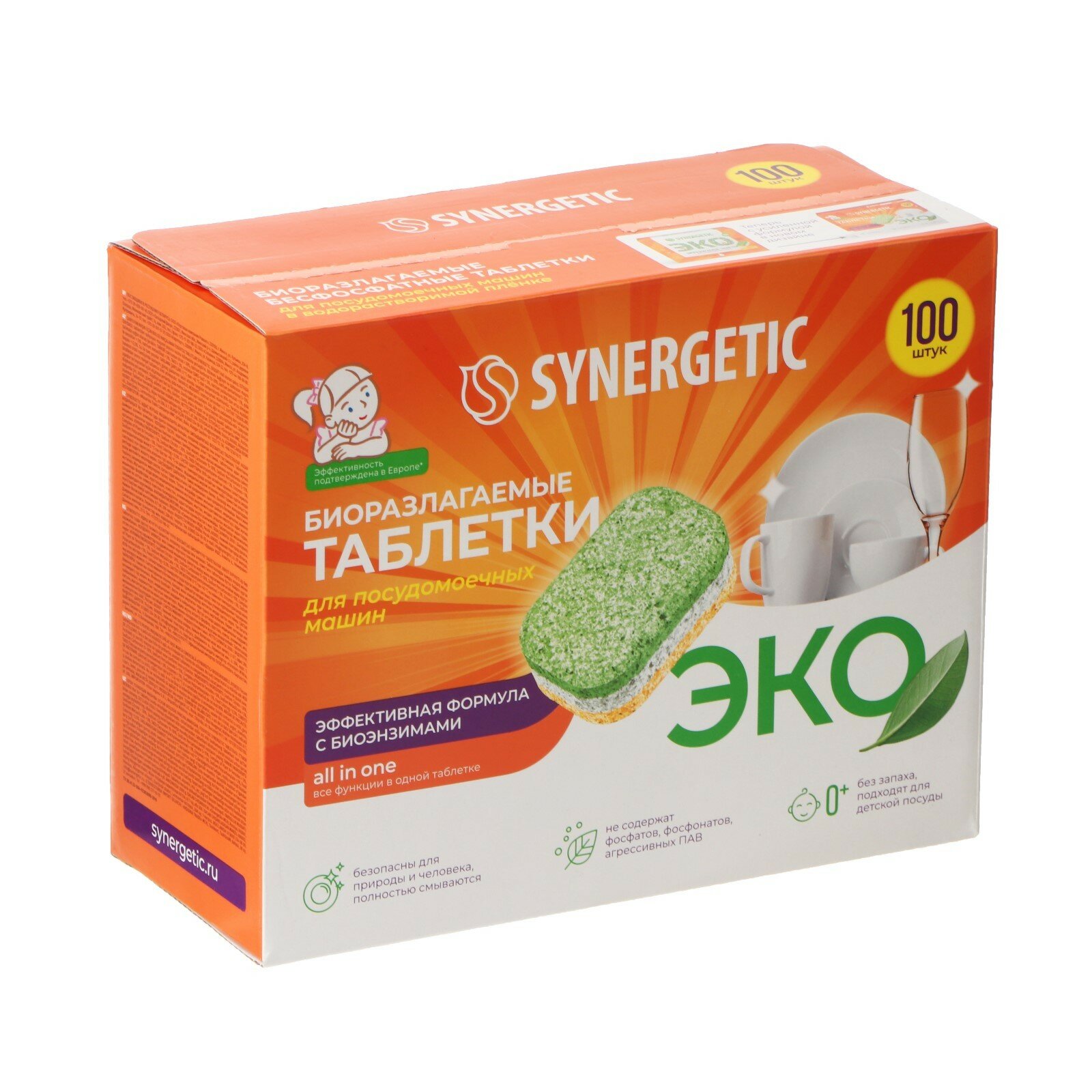 Таблетки для посудомоечных машин Synergetic, Коробка 100шт