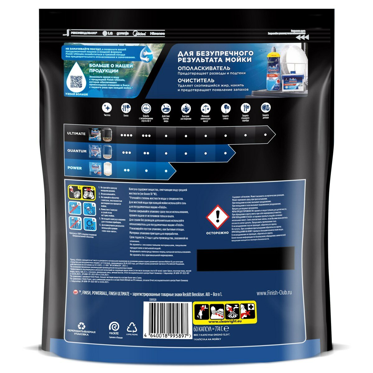 СохранитьКапсулы для посудомоечных машин Finish Ultimate, 60шт интересное: