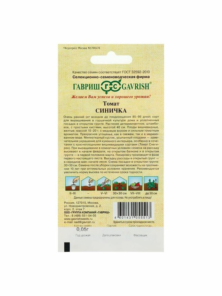СохранитьСемена Томат "Гавриш", "Синичка", очень ранний, 0,05 г интересное:
