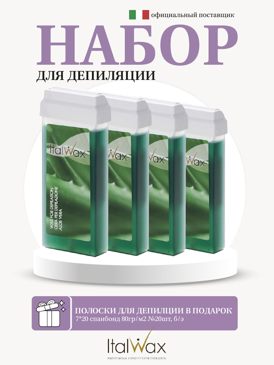 Купить ITALWAX Набор для депиляции теплым воском 4 шт Алоэ + Полоски для депиляции в подарок / Картриджный воск в наборе италвакс