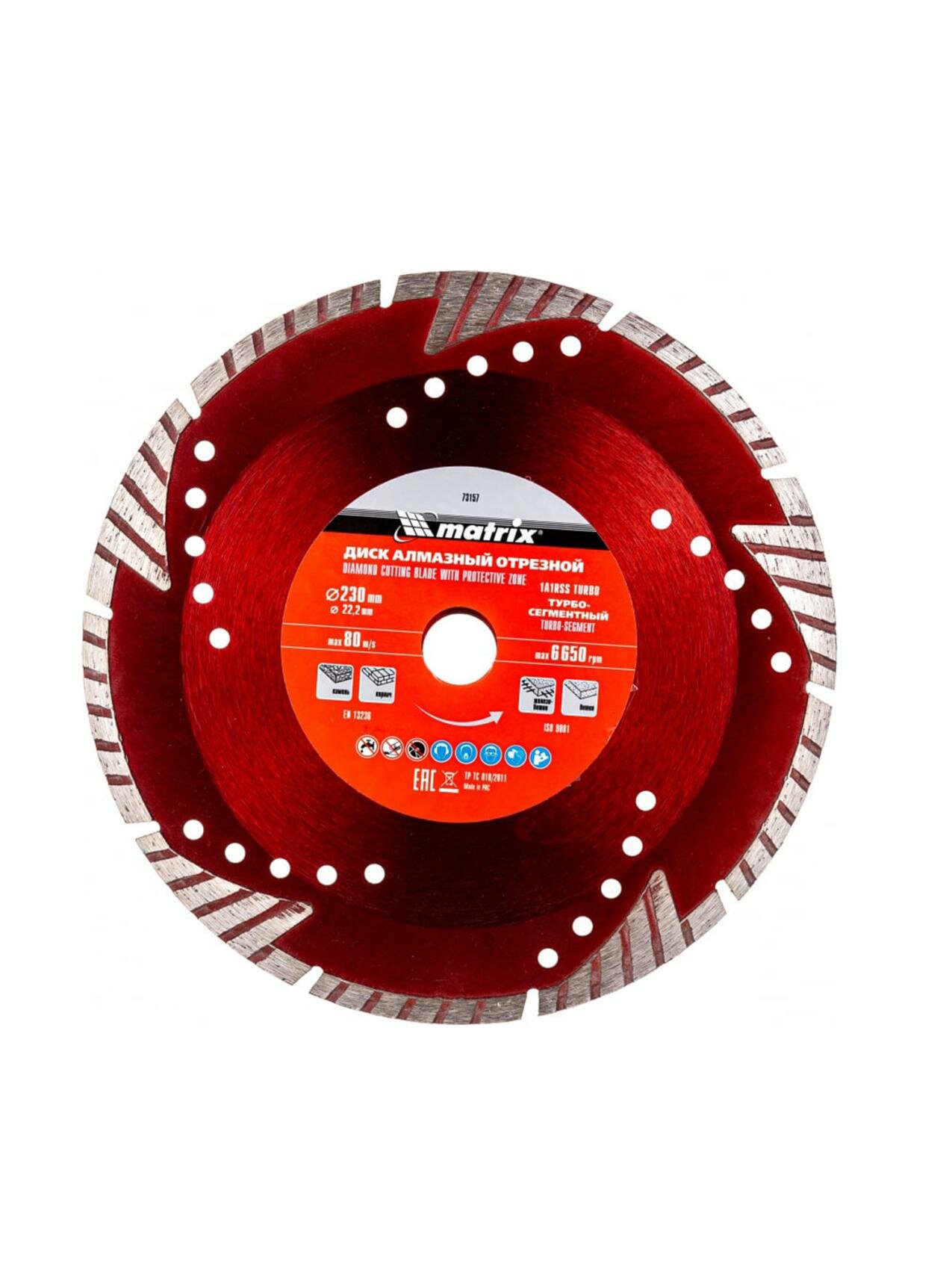 Диск алмазный, отрезной сегментный с защитными сект, 230 х 22.2 мм, сухая резка Matrix Professional 73157