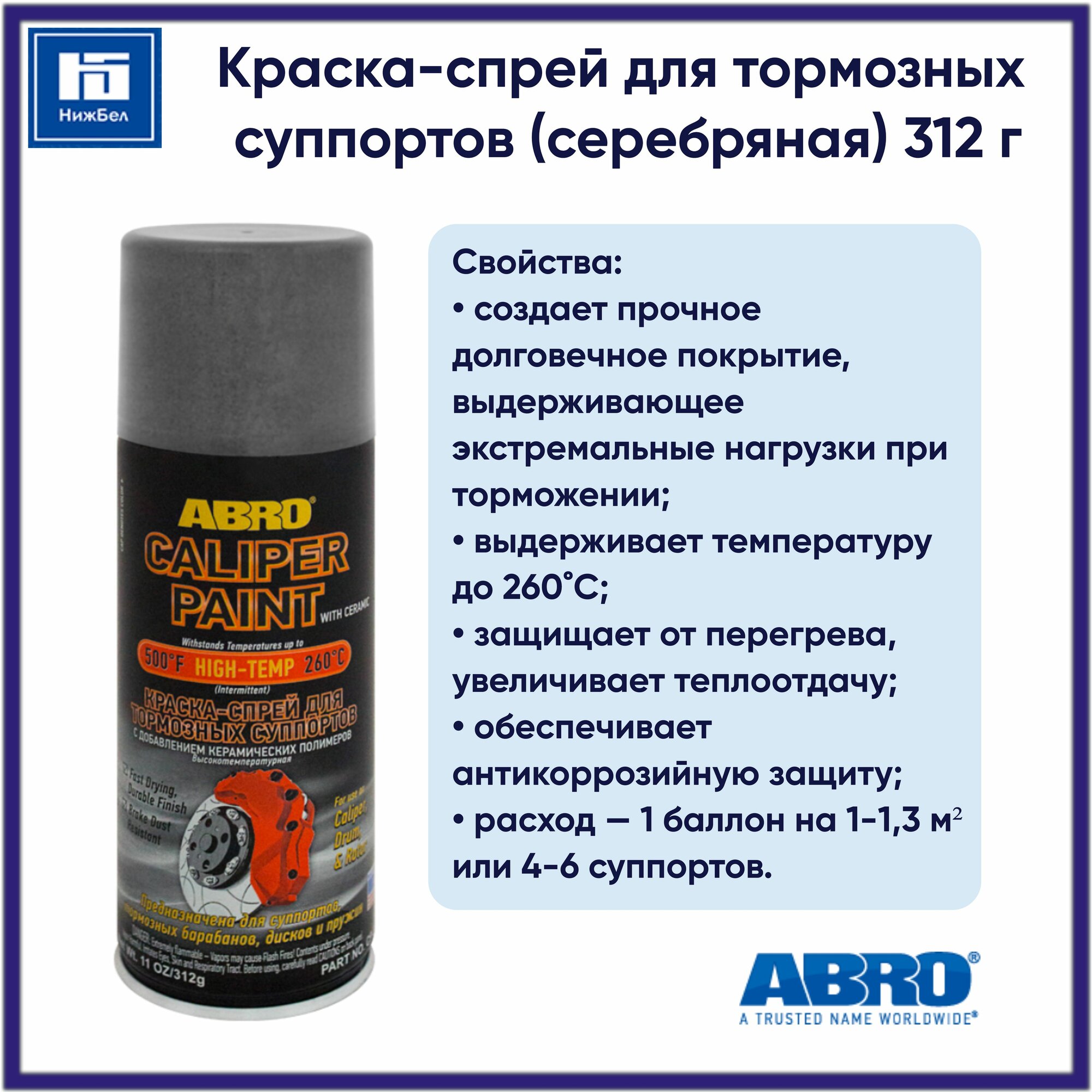 Краска (Аэрозоль) Abro Для Тормозных Суппортов Черная 312 Г. С Добавлением Керамических Полимеров. Выдерживает Экстремальные ...
