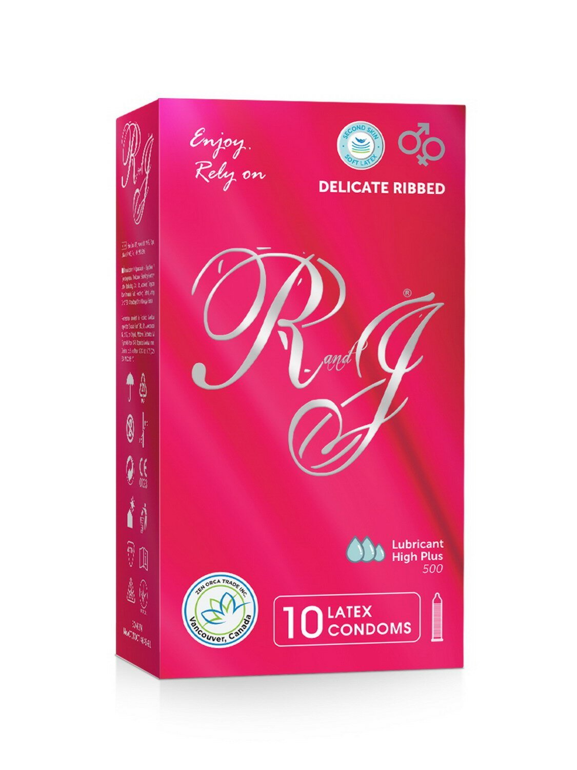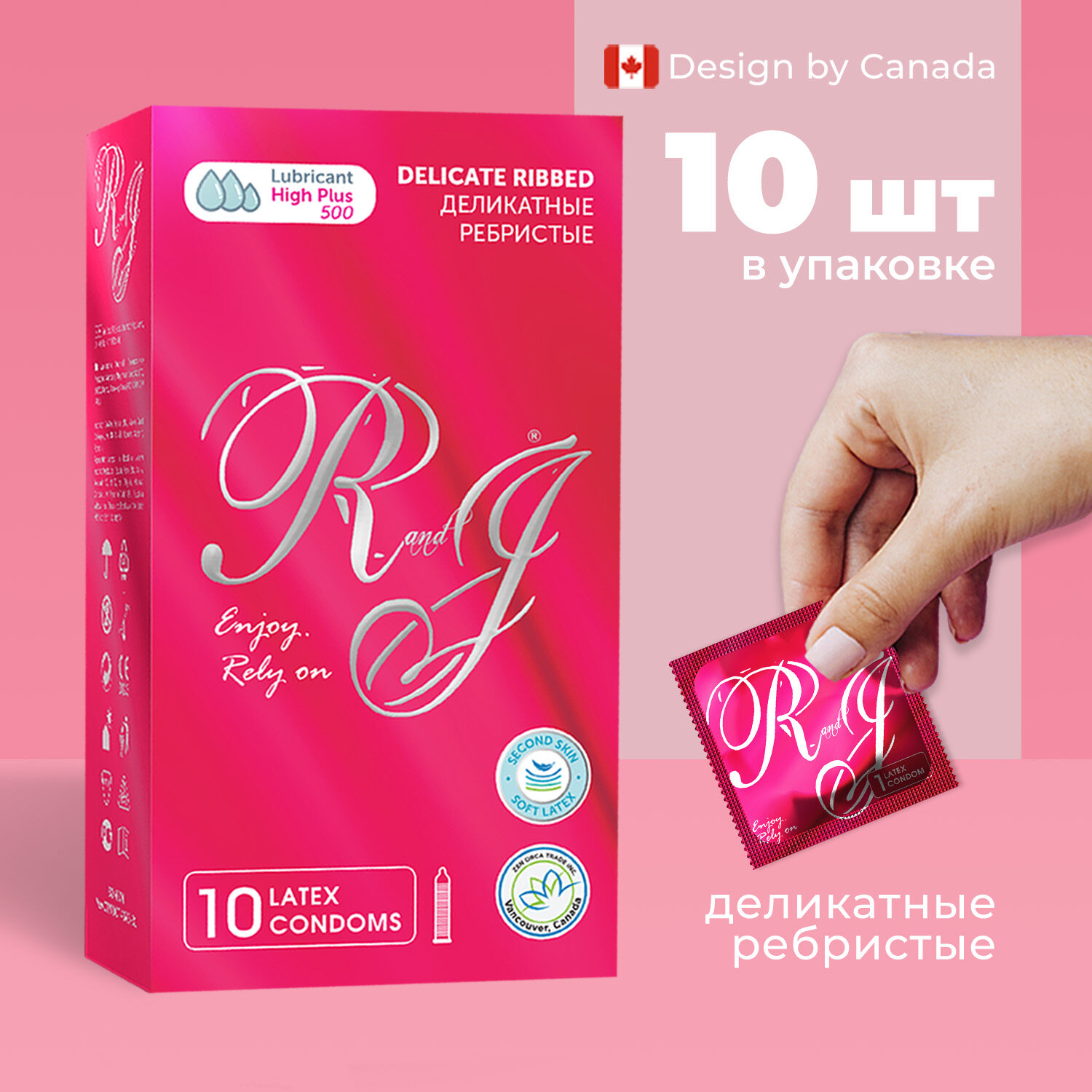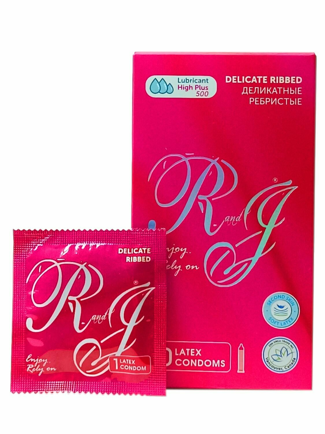 R and J Презервативы Delicate, ребристые, натуральный латекс, 10 штук в упаковке/