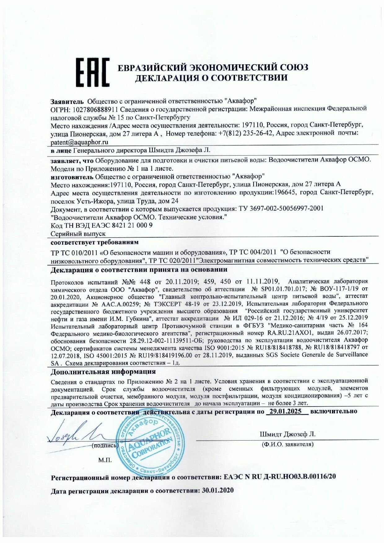 Купить Водоочиститель Аквафор осмо DWM-202S. Система обратного осмоса